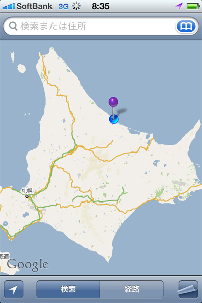 北海道出張記その3~日本の最先端編~デイ・バイ・デイ 初日と2日目は雨で気温も低かったものの、3日目の昼頃から晴れ間がのぞきました。平原の中の一本道をハイエースで走り、仕事場とホテルを往復する毎日。運転は同僚氏に任せていたので気楽なもんですが。窓を開け爽やかな風にあたっていたせいか、心配していた車酔いもなし。出発前に慌てて買った酔い止めチュアブル錠は未開封。 Google Mapsで現在地を確認して、あまりの端っこっぷりに驚きました。日本地図を恐竜の姿に例えるなら、そのおでこですね。道のすぐ向こうはオホーツク海です。 Tweet 続けて読みたい: 関連記事が見つかりません(ブラウザのリロードをお試しください) 2011/7/10 タソ 0 comments on “北海道出張記その3~日本の最先端編~”Add yours → コメントを残す コメントをキャンセル メールアドレスが公開されることはありません。コメント 名前 メール サイト コメントの返信をメールで受け取る