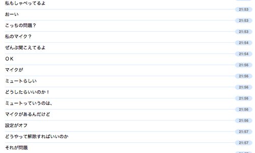 無料記念日デイ・バイ・デイ 盟友C氏と初めてのSkype通話に挑戦です。 しかしマイクが内蔵されていなかったC氏のパソコン。こちらの声は聞こえているみたいですが向こうの声が聞こえません。iMacに向かって話しかけるとチャットで返事が来る不思議な体験。 その後インカムを探しだしたC氏。音声が聞こえた時の感動ったら!(通話無料だし) Tweet 続けて読みたい: 関連記事が見つかりません(ブラウザのリロードをお試しください) 2009/2/4 タソ 0 comments on “無料記念日”Add yours → コメントを残す コメントをキャンセル メールアドレスが公開されることはありません。コメント 名前 メール サイト コメントの返信をメールで受け取る