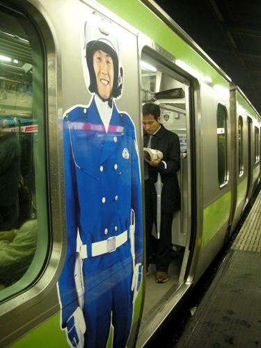逆に、の山手線デイ・バイ・デイ 渋谷駅のホームで山手線を待っていると、へんてこなラッピングの車両が滑り込んできました。 原宿:見渡せば警視庁のポスターが車内にも。警視庁が山手線ジャック中。 代々木:新宿で降りたら絶対撮ってやろう、とニンマリ。 人型の切り抜きがシールみたいな、驚愕のチープ感。逆に斬新、的な。 Tweet 続けて読みたい: 関連記事が見つかりません(ブラウザのリロードをお試しください) 2009/3/4 タソ 0 comments on “逆に、の山手線”Add yours → コメントを残す コメントをキャンセル メールアドレスが公開されることはありません。コメント 名前 メール サイト コメントの返信をメールで受け取る