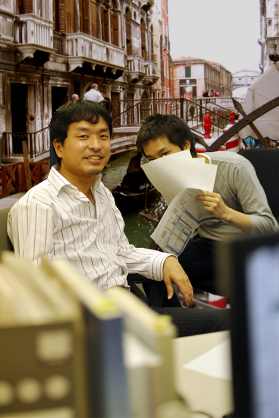 水上会議デイ・バイ・デイ 金曜の夜、目の前でビッグDとタロDがミーティング中。真剣に話しているかと思いきや、そのうち『いつでも誘ってくださいよ』というタロDの発言が聞こえる。ビッグDが『また飲みにイコーヨ、ウハハ』と言ったに違いない。(でもナイスアイデアだね!) えーと、背景がつまらなかったのでヴェネチアの風景に差し替えました。 あー、机ごと流れていきたい。無線LANで。 Tweet 続けて読みたい: 関連記事が見つかりません(ブラウザのリロードをお試しください) 2009/4/12 タソ 0 comments on “水上会議”Add yours → コメントを残す コメントをキャンセル メールアドレスが公開されることはありません。コメント 名前 メール サイト コメントの返信をメールで受け取る