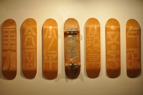 『大原大次郎の少年タイポ展』へ行く2デイ・バイ・デイ スケートボーディングでは見事なトリックはもちろん、その失敗さえもカッコいいんですが、個人的にはボードを立てて今滑りださんと前方を見つめている姿が一番カッコいいと思います。だからデッキの裏面はとっても重要。you know? これはomo氏の新作『文字に乗る』。どのタイポも魅力たっぷり。この手彫りタイポ入りのデッキ、実は購入することができます。ウィールをつければ滑れるので、嘘ではなく本当に文字に乗れる作品! Tweet 続けて読みたい: 関連記事が見つかりません(ブラウザのリロードをお試しください) 2009/11/4 タソ 0 comments on “『大原大次郎の少年タイポ展』へ行く2”Add yours → コメントを残す コメントをキャンセル メールアドレスが公開されることはありません。コメント 名前 メール サイト コメントの返信をメールで受け取る