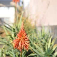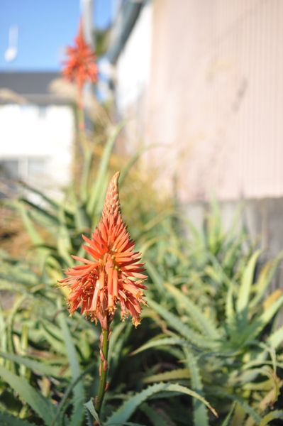 おでんを買った帰り道、通りから一本入った近道を歩きました。八百屋の脇の砂利道は、小学生の頃の通学路。鮮やかな緑の藻が茂っていた細い水路も今では干上がってしまったようです。おばあちゃんが足を止めたのは地面から伸びたアロエの前でした。今やヨーグルトのお供として活躍するアロエですが、熱帯植物のような花をつけるんですね。