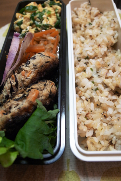 真夜中の弁当報告書デイ・バイ・デイ 作り置きしておいたおからハンバーグ。下に生野菜を敷いて大葉を添える。/弁当のおかずに最適な切り干し大根の煮物。にんじん入り。/新鮮なニラをたくさんいただいたのでニラ玉。弁当用に汁は少なめ、玉子は固め。/ごま油を使った梅ちりめん炒飯。梅ちりめんは日曜日に鎌倉の佃煮屋で買ってきたもの。米は白米・発芽玄米・押し麦を3:1:1でブレンド。 真夜中の弁当づくりが完了いたしましたことをここにご報告いたします。 Tweet 続けて読みたい: 関連記事が見つかりません(ブラウザのリロードをお試しください) 2010/1/28 タソ 0 comments on “真夜中の弁当報告書”Add yours → コメントを残す コメントをキャンセル メールアドレスが公開されることはありません。コメント 名前 メール サイト コメントの返信をメールで受け取る