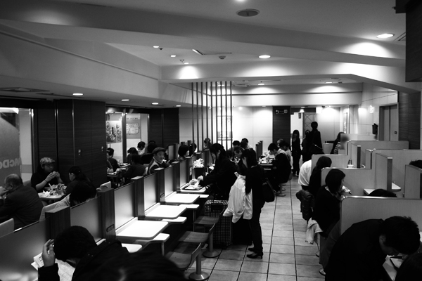 トーキョー・ハニカム・シートデイ・バイ・デイ トーキョーの店は狭い。特に都心部では「狭いことを感じさせない~」というコンセプトすらかなわない、ただ単に狭い店舗が目立つ。ここトーキョーで自分のためだけのスペースを確保したいなら、それなりにお金を払わなくてはいけない。 新宿のファストフード店にはコンパクトな一人用のシートが向かい合う。右側のエリアは、各席が低いボードで仕切られていて、着席した人の向きを前・右・左と変えることで狭いスペースをさらに潰しあう見事なレイアウトだった。人々は蜂の巣におさまる働き蜂みたいに見えた。 Tweet 続けて読みたい: 関連記事が見つかりません(ブラウザのリロードをお試しください) 2010/3/7 タソ 0 comments on “トーキョー・ハニカム・シート”Add yours → コメントを残す コメントをキャンセル メールアドレスが公開されることはありません。コメント 名前 メール サイト コメントの返信をメールで受け取る