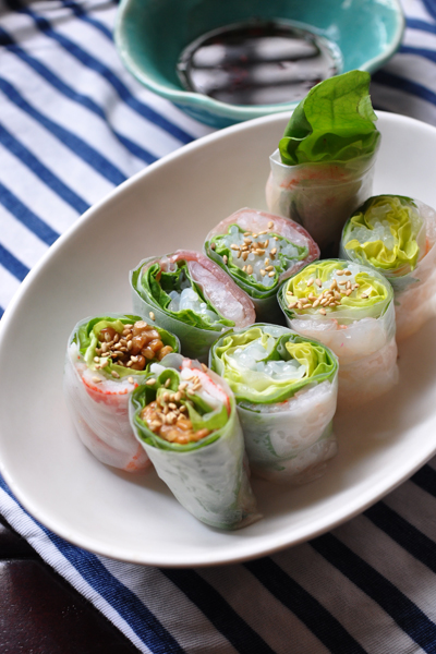 春の主食の生春巻きデイ・バイ・デイ 初めて作ったその日から、毎晩自宅巻きしています。そこで、初心者が偉そうにお伝えする3つのポイント。ライスペーパーは水を張ったボウルにさっとくぐらせ1枚ずつ戻す(くっつき防止)。巻くときはやや強めに巻く(崩壊防止)。全ての具材を一度に巻こうとしない(見た目重視)。 巻く方向に向かって3列くらいに分けて具材を配置しておきましょう。この日はサラダ菜としらたきを1列目に、2列目で生ハム・エビ・ひきわり納豆を巻き込み、3列目で大葉をくるみました。自家製のスウィートチリソースもなかなかのもの。 Tweet 続けて読みたい: 関連記事が見つかりません(ブラウザのリロードをお試しください) 2010/4/13 タソ 0 comments on “春の主食の生春巻き”Add yours → コメントを残す コメントをキャンセル メールアドレスが公開されることはありません。コメント 名前 メール サイト コメントの返信をメールで受け取る