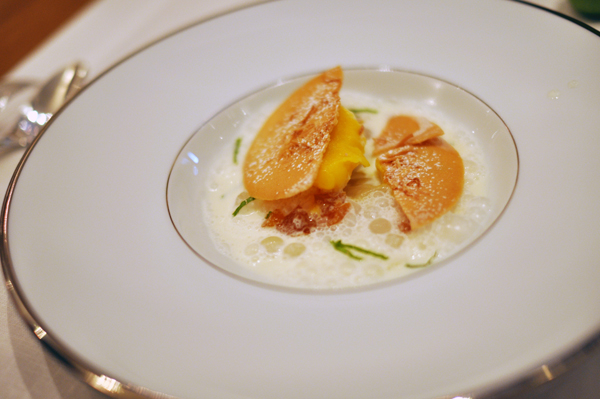 ゴールデンパイナップルの冷たいラヴィオリ・・・デイ・バイ・デイ デザートは『ゴールデンパイナップルの冷たいラヴィオリ、シャルトリューズで香り付けしたショコラブランのスープ仕立て 完熟マンゴーとバナナのソルベと共に』をオーダー。まさに、わからんもんがわからんもんに仕立てられている状態です。(料理名だけでテキストエリアがみるみる埋まっていきます) 席から厨房の一部が見えました。高いコック帽をかぶった若いシェフが「食材を配置し、丁寧に皿を拭く」を繰り返しています。その手つきが軽やかで力強くて、素敵なものを見た気がしました。 Tweet 続けて読みたい: 関連記事が見つかりません(ブラウザのリロードをお試しください) 2010/8/1 タソ 0 comments on “ゴールデンパイナップルの冷たいラヴィオリ・・・”Add yours → コメントを残す コメントをキャンセル メールアドレスが公開されることはありません。コメント 名前 メール サイト コメントの返信をメールで受け取る